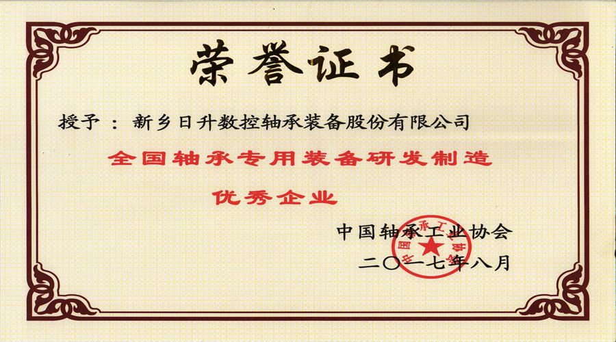 新鄉(xiāng)日升獲評“全國軸承專用裝備研發(fā)制造優(yōu)秀企業(yè)”