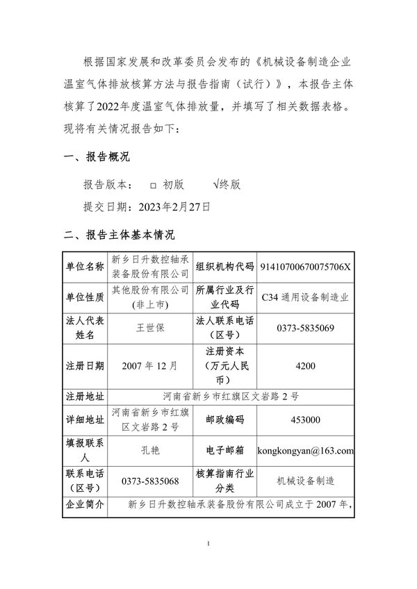 2022年溫室氣體排放核算報(bào)告
