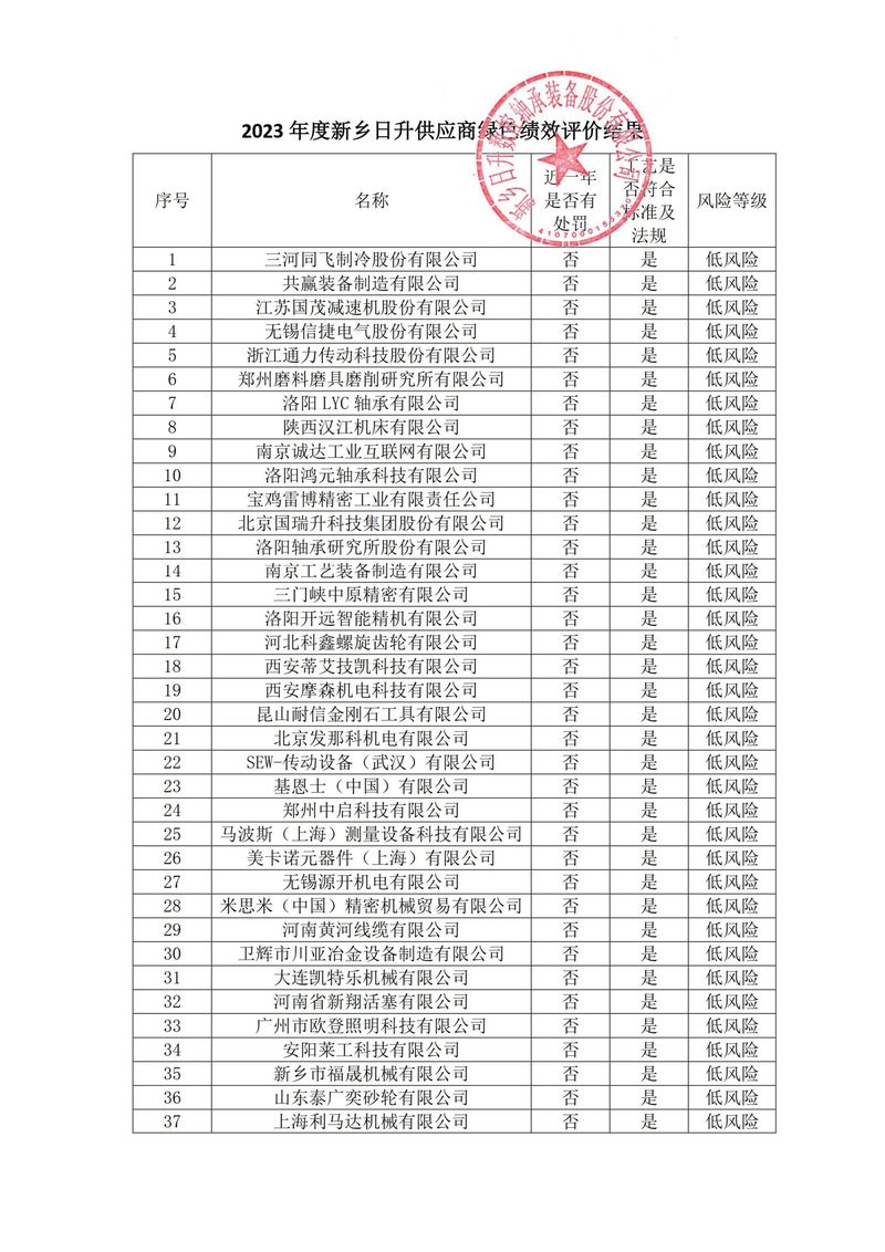 新鄉(xiāng)日升-低風(fēng)險(xiǎn)供應(yīng)商公示-2023年度新鄉(xiāng)日升供應(yīng)商綠色績(jī)效評(píng)價(jià)結(jié)果