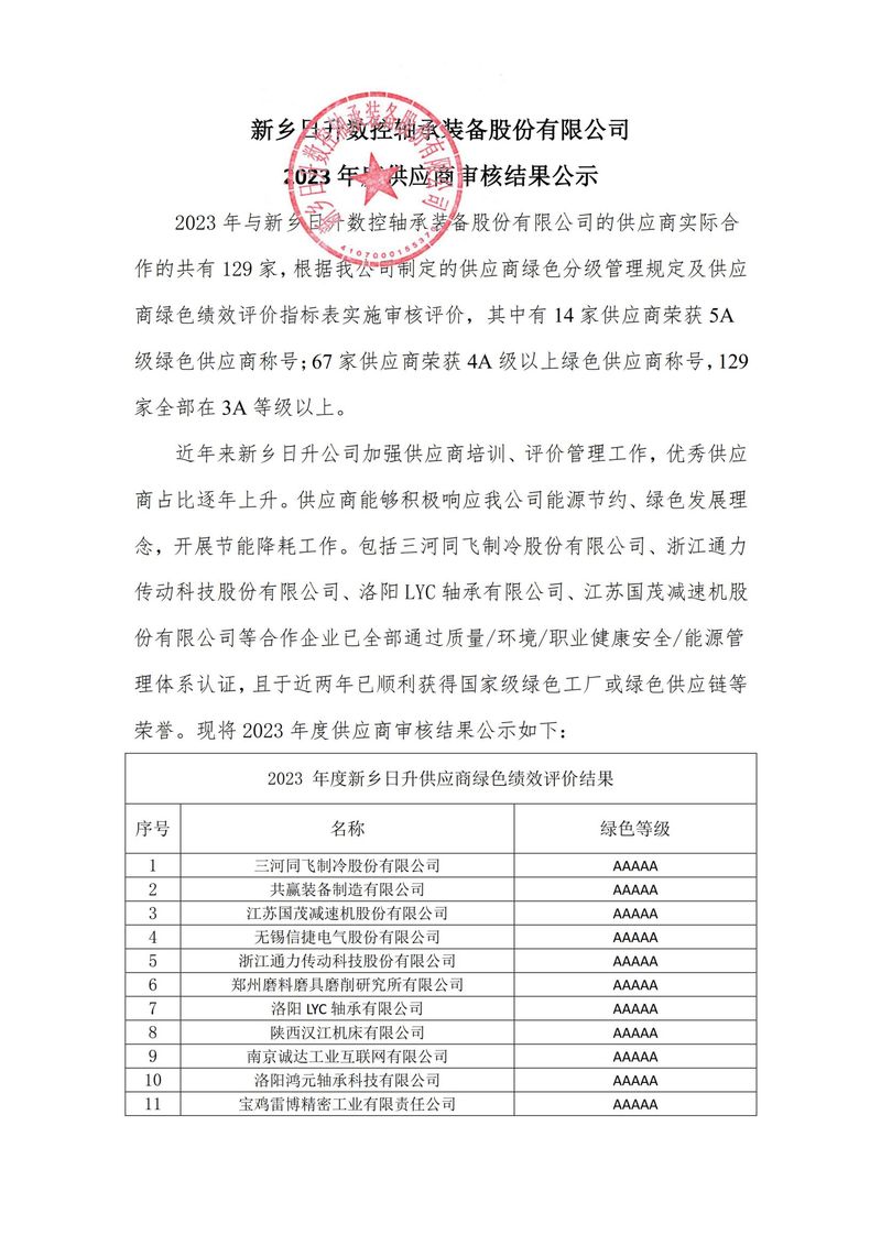 新鄉(xiāng)日升-供應(yīng)商定期審核結(jié)果公示