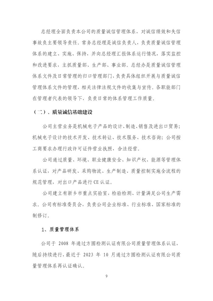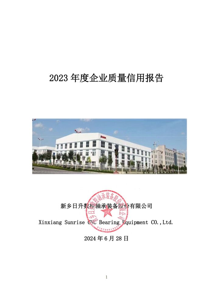 新鄉(xiāng)日升2023年度企業(yè)質(zhì)量信用報(bào)告