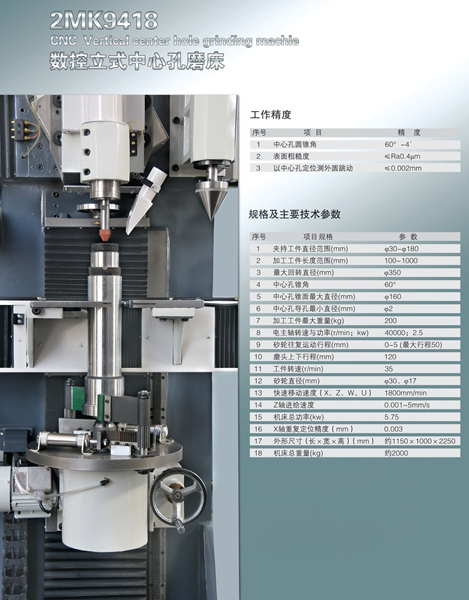 本機(jī)床主要對(duì)軸類零件兩端的中心孔進(jìn)行磨削加工,特別是大中心孔軸類零件(如機(jī)床主軸),保證兩端中心孔的同軸度,提供中心孔的精度。
